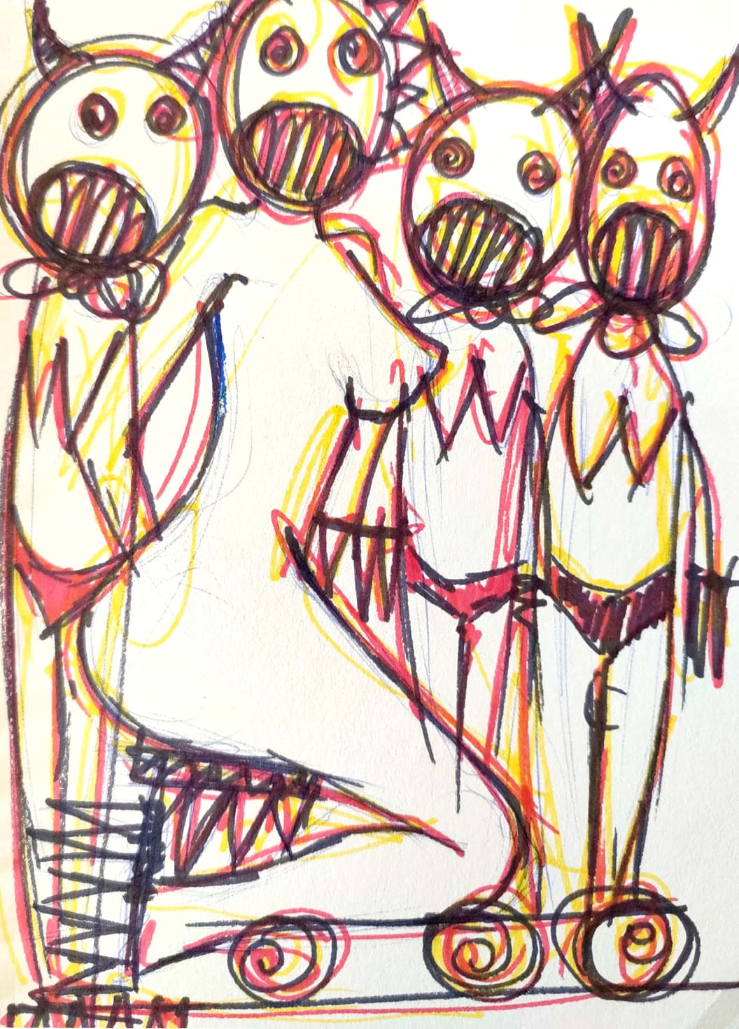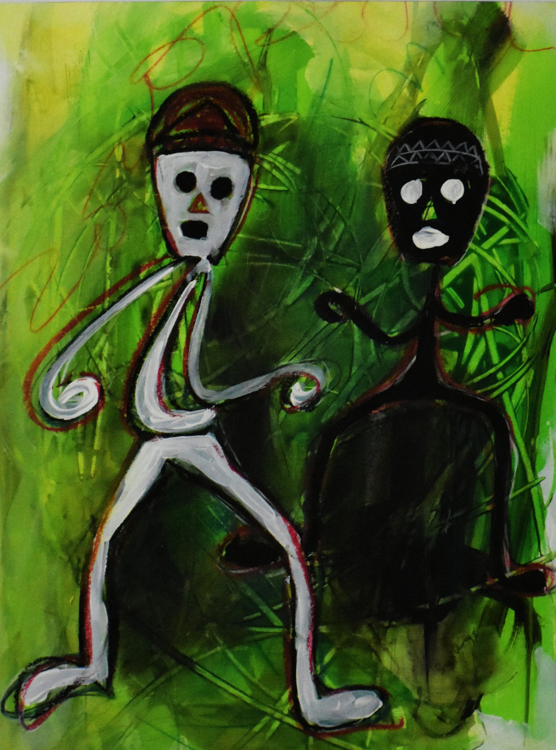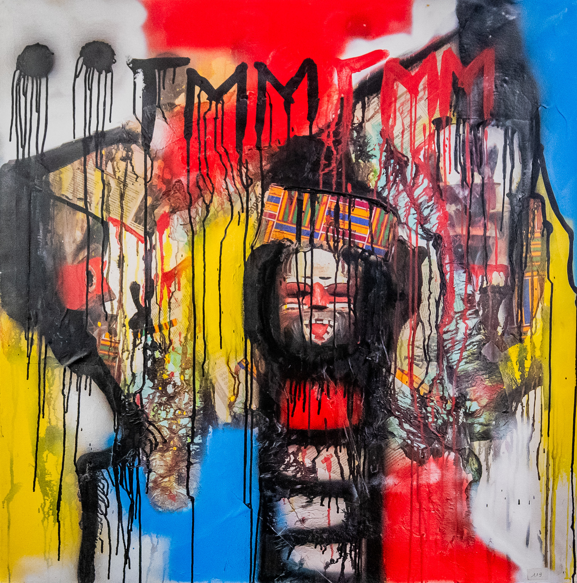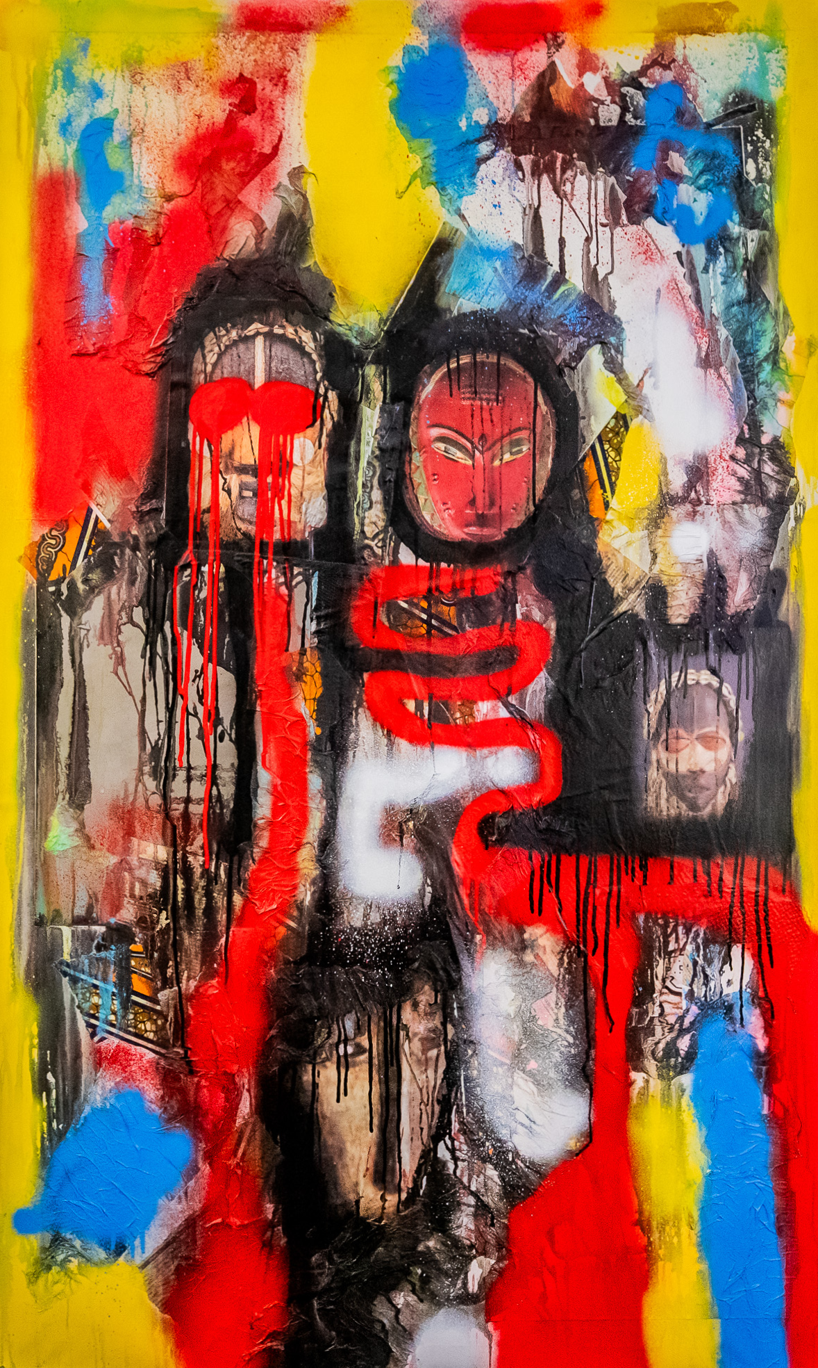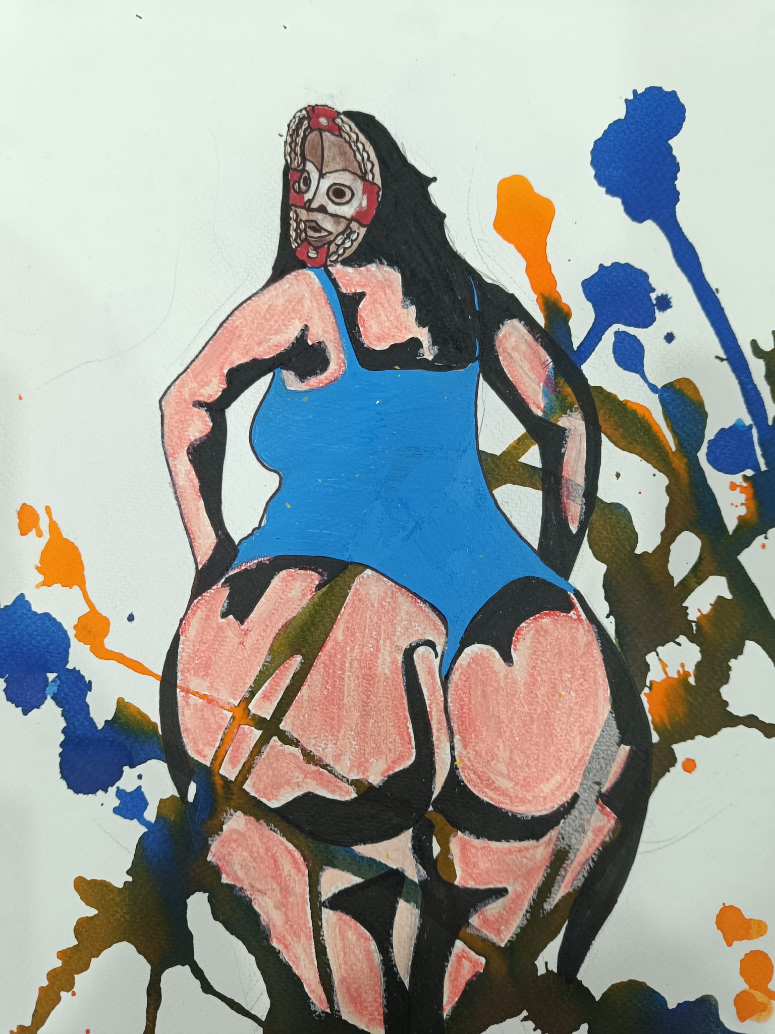 Chaque peinture, chaque figure, chaque objet dérivé naît d’un dialogue entre les formes héritées d’Afrique et une vision résolument contemporaine. Son travail est une traversée plastique : un espace de résistance, d’émotion et de beauté engagée.